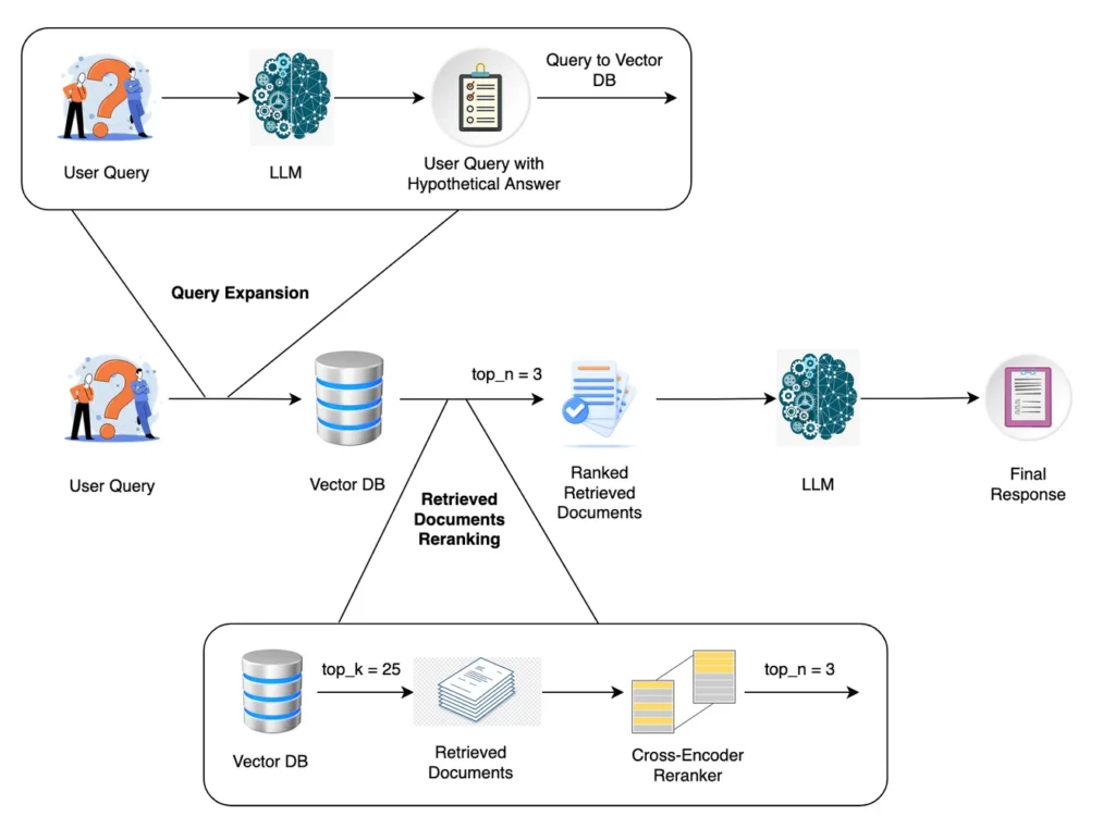 This approach is great, but we can make it even better with advanced techniques like Query Expansion and Retrieved Documents Reranking.