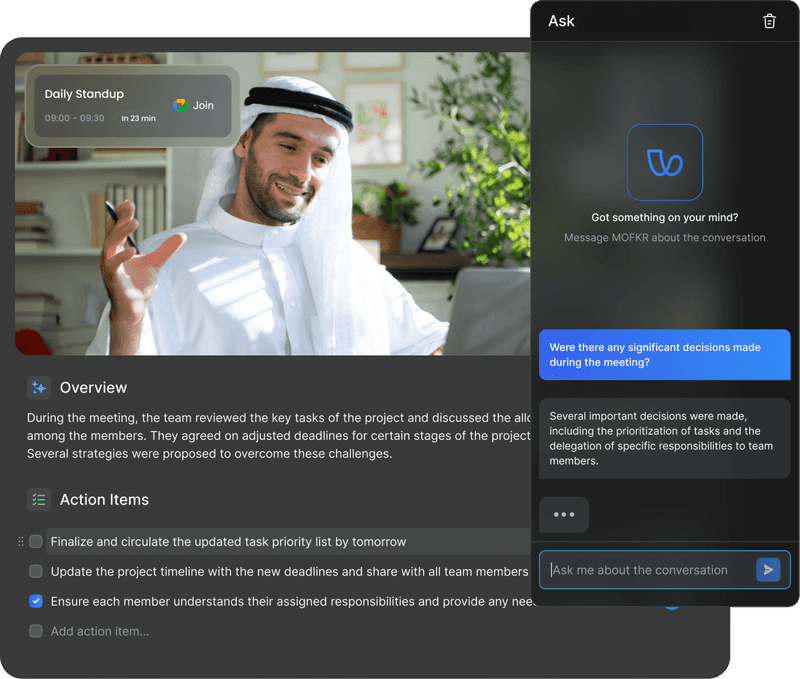 They needed a robust platform that could attach to users’ calendars and act as an AI-driven meeting assistant. The goal was to automate transcription, notes, action items, and summaries while ensuring compatibility with various meeting platforms and handling complex linguistic nuances in both English and Arabic, including multiple Arabic dialects.